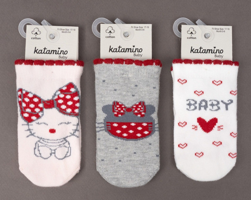 Тонкие хлопчатобумажные носки востребованы в любое время года. Для малышей от рождения до двух лет мы предлагаем большой ассортимент изделий бренда KATAMINO. Они обеспечат ребёнку комфорт, отличаются высоким качеством, соответствует санитарным нормам, отлично стираются и долго носятся.