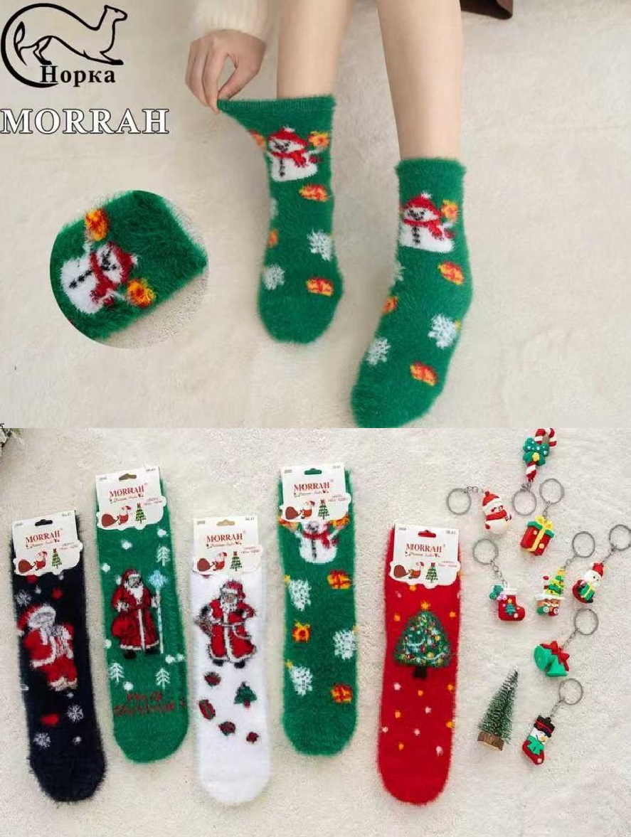 Носки женские с новогодним принтом теплые из шерсти норки MORRAH 2658 HB-MH